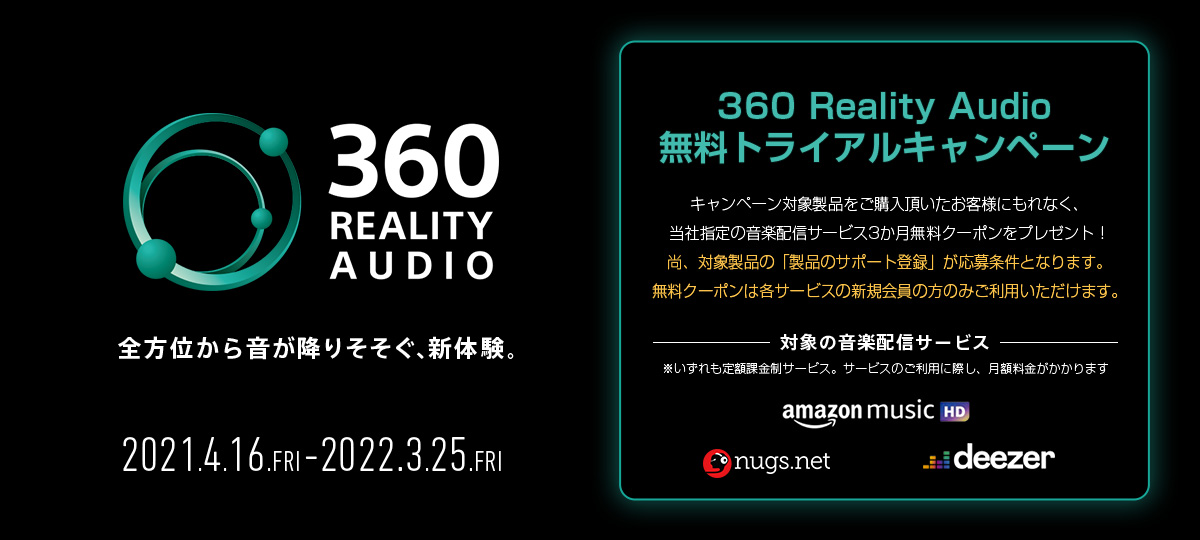 キャンペーン概要360 Reality Audio 無料トライアルキャンペーン(以下「本キャンペーン」)では、…
